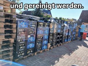 78 volle Paletten sind erst zu sortieren, rückzuführen, zu reinigen und wieder einzulagern.